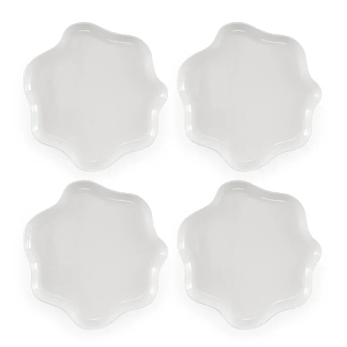Embrace elegance with our Dinner Plate Set of 4 featuring a sculptural, wave-like design. Crafted from porcelain, these plates add fluid beauty to any modern meal. With versatile use for everyday dining, they make plating a breeze and add flair to your table setting.