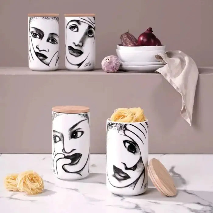 Introducing the 'Wait A Second' Large Canister, a must-have for any stylish kitchen. Crafted from porcelain, this 19cm tall canister from the Sketchbook range boasts a generous 950ml capacity for all your pantry essentials. Elevate your storage game with this elegant and practical piece.